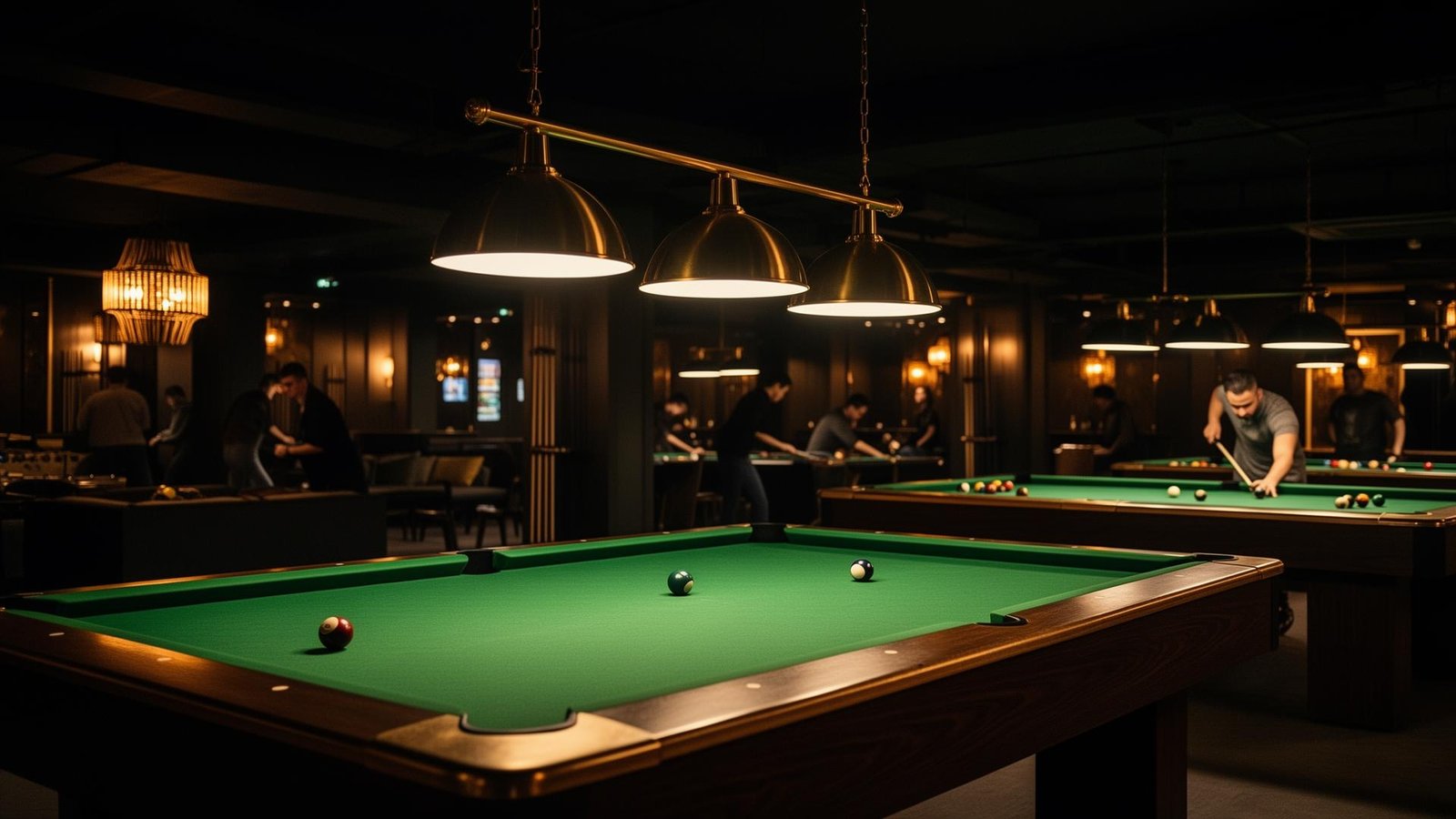 Classic 8-ball and 9-ball pool on professional tables with premium cues.